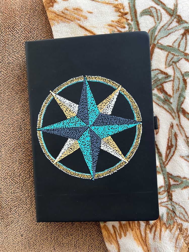 Freehand compass rose. Ideal for carrying around every day. 5.5”x8.3”. 240 pages. College ruled.