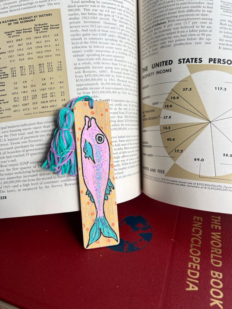 A little fish friend for inside the pages of your latest read. Handpainted bamboo bookmark with handmade tassel. 4.7” long without tassel.