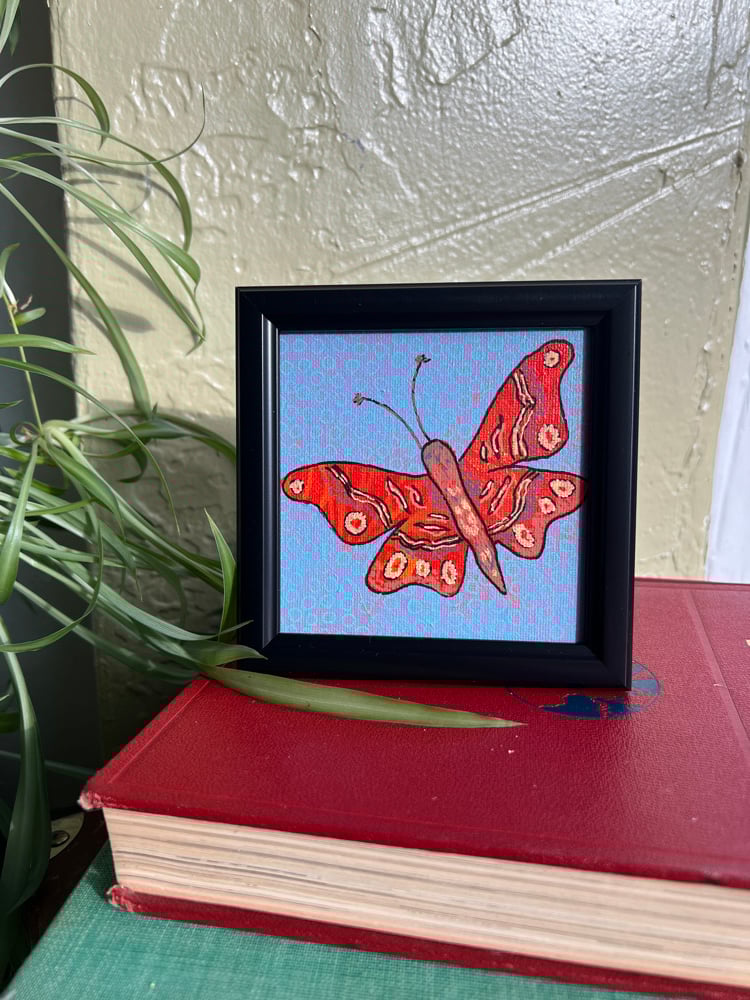 ✅4x4” mini canvas panel in a black frame (can be displayed table top)