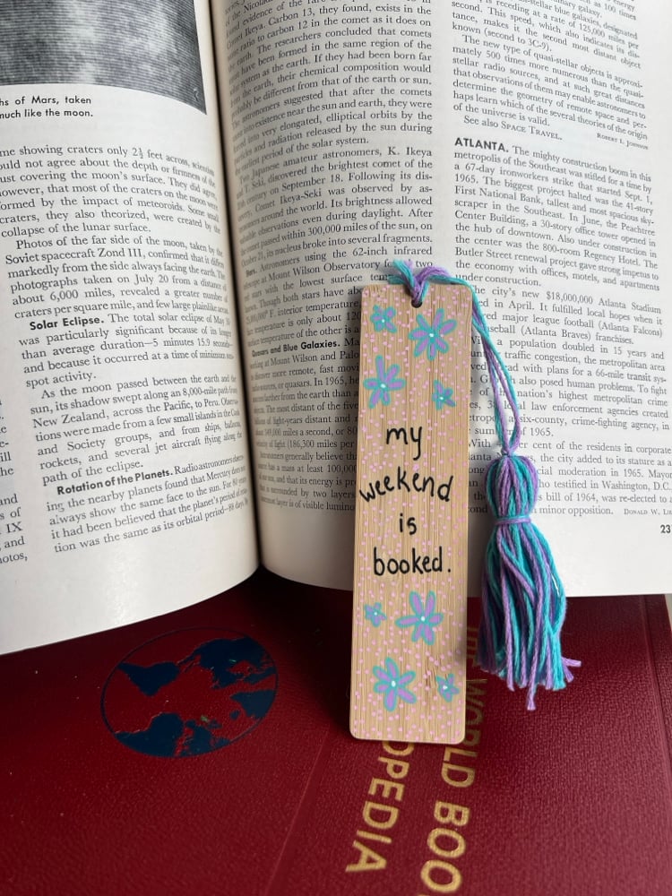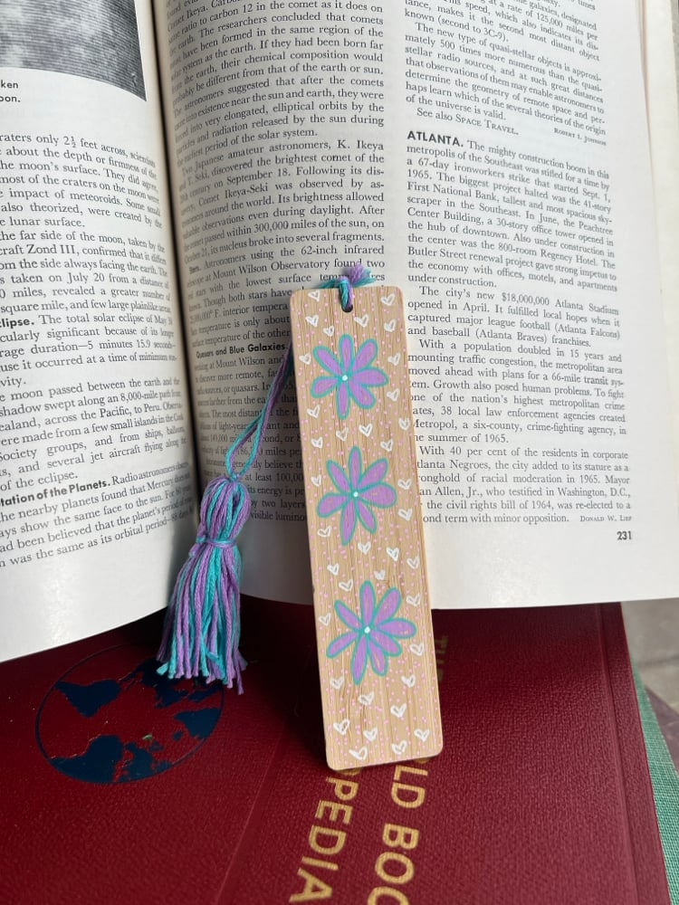 A little garden party for inside the pages of your latest read. Handpainted bamboo bookmark with handmade tassel. 4.7” long without tassel.
